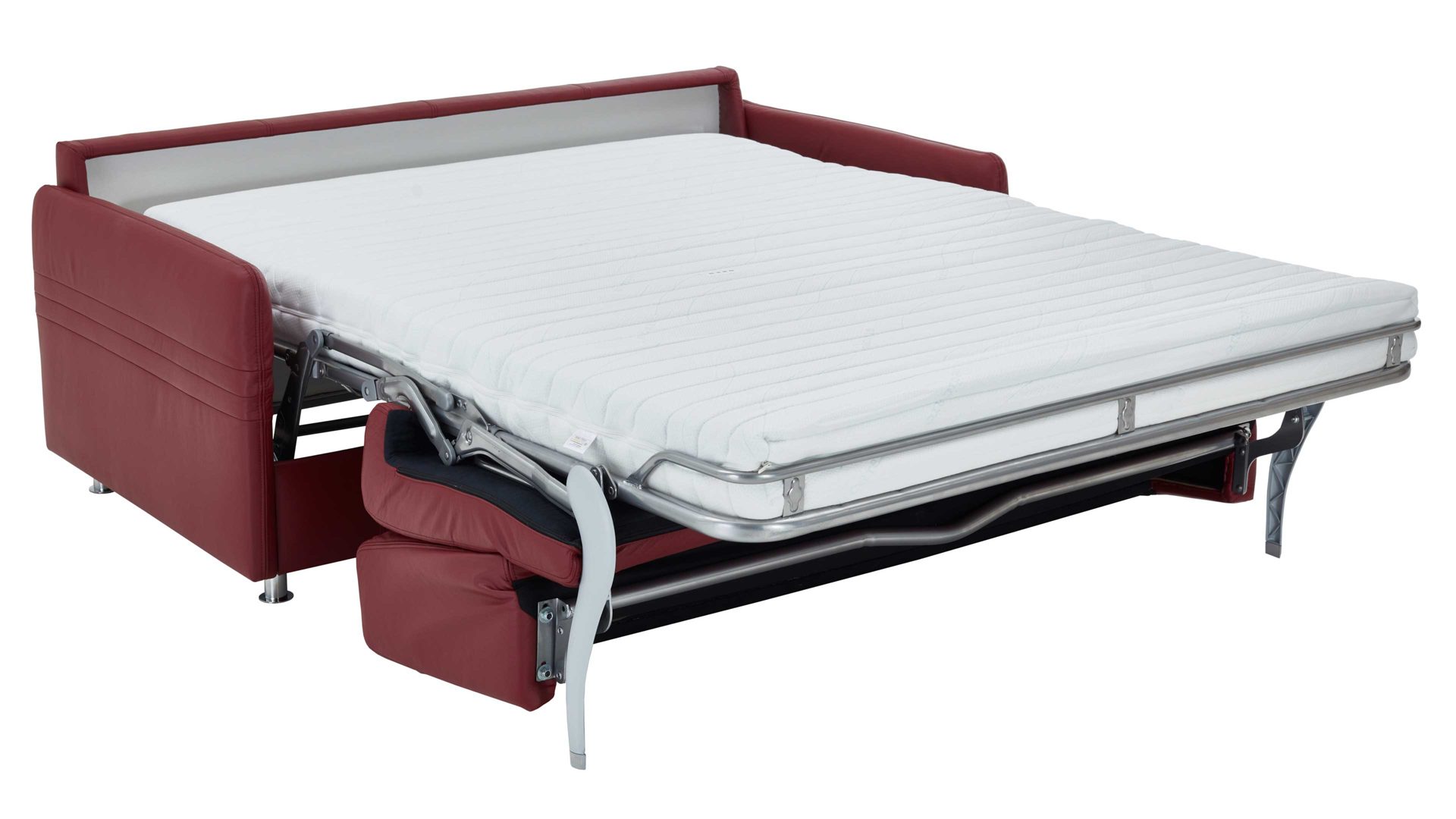 dunkelrotes Leder 20-1030 & Chromfüße 84 - Breite ca. 157 cm