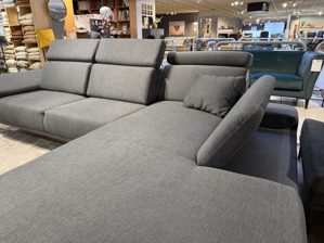 Der anthrazitfarbene Stoffbezug mit markanter Doppelnaht verleiht dem Sofa nicht nur eine elegante Optik, sondern überzeugt auch durch seine Alltagstauglichkeit. Die pflegefreundliche Oberfläche lässt sich leicht reinigen – ideal für Familien und Vielnutzer. Zudem steht Ihnen eine große Auswahl an Stoff- und Lederkollektionen zur Verfügung, um Ihre Wunschkombination farblich und haptisch individuell abzustimmen.