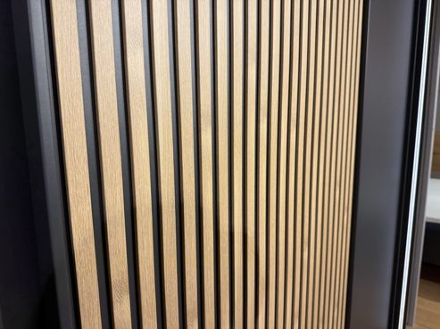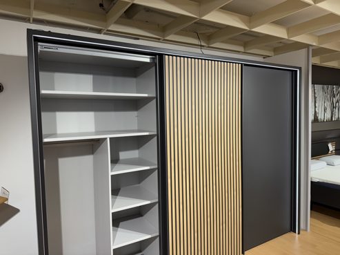 Front: 393 Graphit / mittlere Tür mit Lamellen in Bianco Eiche NB