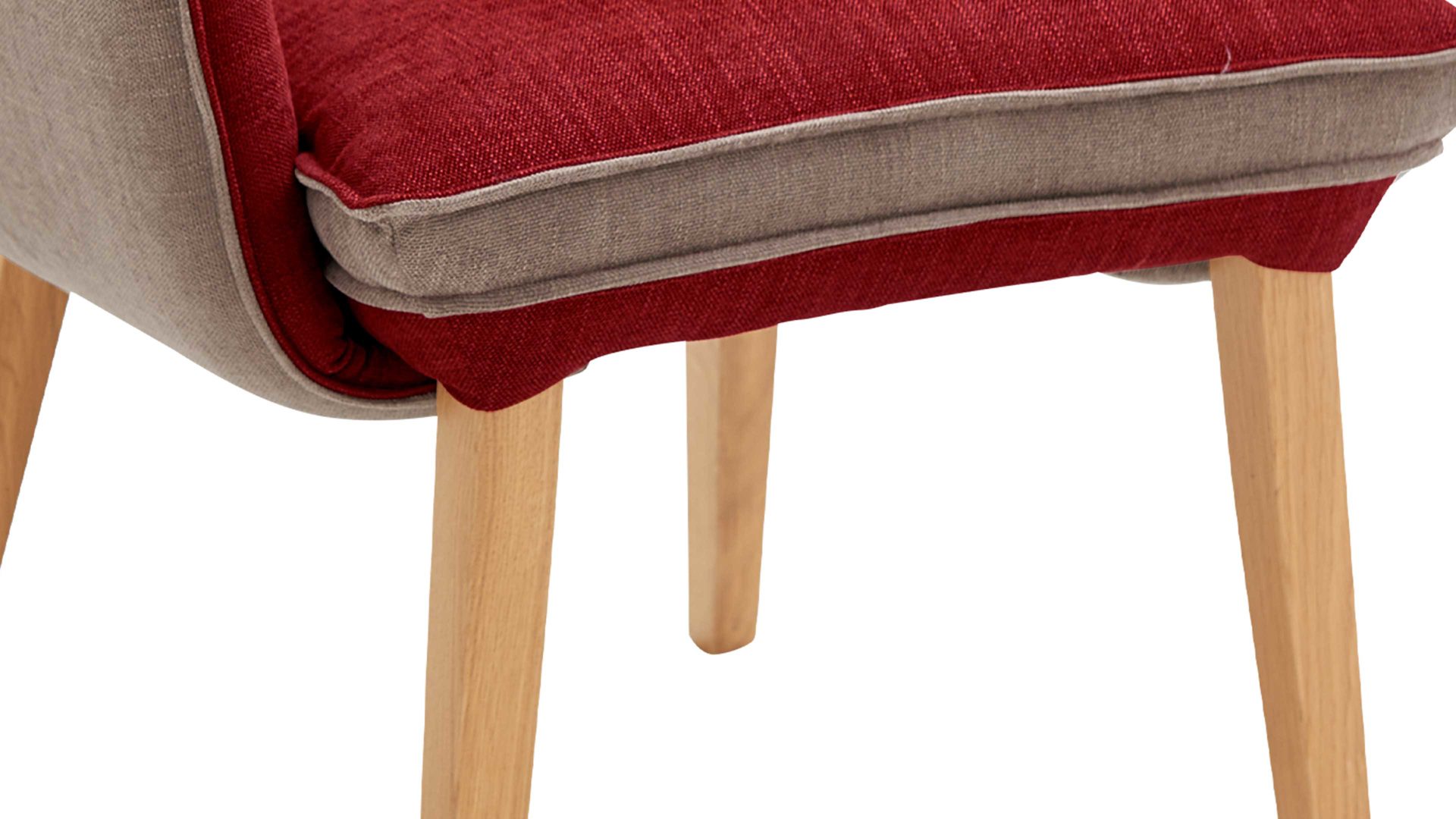 Holen Sie mit diesem Polsterstuhl farbige Frische in Ihr Zuhause. Denn dieses Sitzmöbel mit vier Eichenholzfüßen ist an der Sitzfläche und der Rückenfläche mit leuchtendem Rot bezogen, wohingegen die Rückseite camelfarben ist. Die Knopfheftung im Rücken ist ein weiterer raffinierter Akzent. Machen Sie es sich bequem auf einer hochwertigen Kaltschaumpolsterung auf Wellenunterfederung, einer Sitzhöhe von ca. 51 cm und einer Sitztiefe von ca. 45 cm.