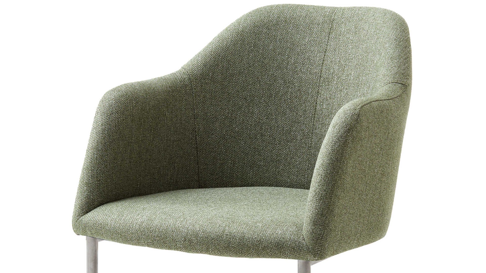 Darüber hinaus weiß er in puncto Komfort zu überzeugen. Ein Edelstahlgestell bildet die robuste Basis. Das widerstandsfähige Material sorgt für die nötige Stabilität und die klassische Farbgebung bringt edles Flair in den Raum. Attraktiv abgerundet wird der Schwingstuhl durch den blassgrünen Webstoffbezug. Die außergewöhnliche Farbe wirkt elegant und harmoniert bestens mit dem Gestell. Einen feinen Akzent setzt die Steppnaht im Rücken des Schalensitzes.