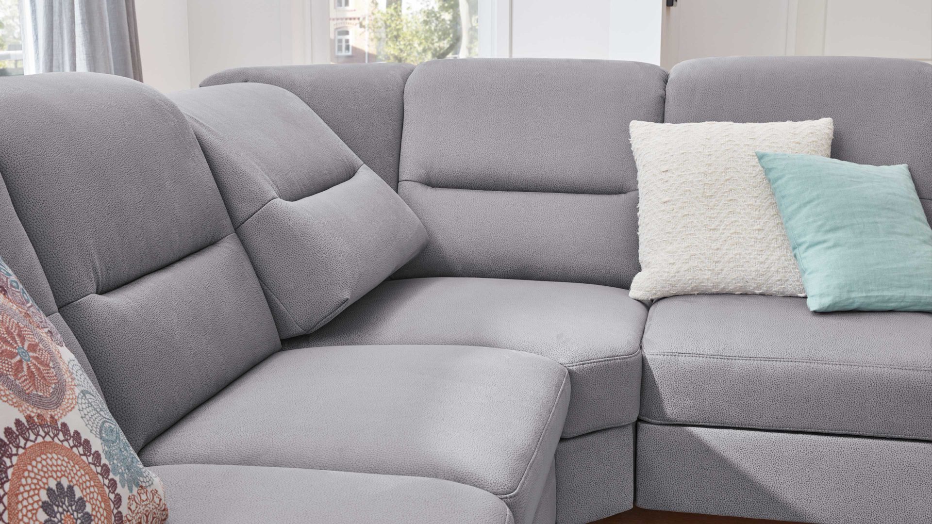 Der Relaxrücken RR ist eine Mehrpreis-Funktion für die Eckelemente des Modulmaster-Modells MM-PP1009. Es handelt sich dabei um eine manuelle Rückenverstellung, die den Komfort spürbar erhöht. Nachdem Sie die Rückenlehne rechts oder links nach vorne gezogen haben, können Sie zum Entspannen auf dem Sofa eine besonders bequeme Sitzhaltung einnehmen.