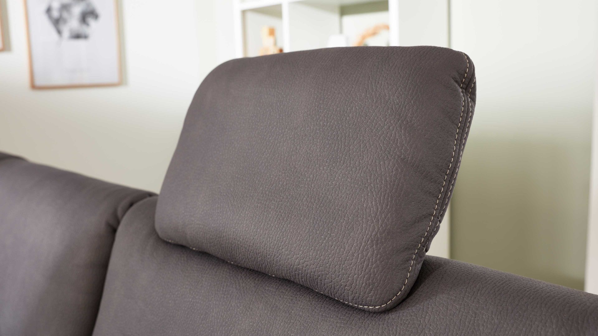 Die Comfort-Kopfstütze CKS fungiert als Mehrpreis-Zubehör für die Sofas mit grauem Mikrofaserbezug aus dem Modulmaster Programm MM-ZE1049.