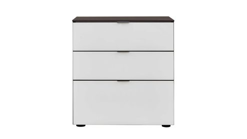 Zur Nachtkonsole gehören drei Schubladen - davon eine größere unten und zwei kleinere oben. Darin können Sie verschiedene Gegenstände, die Sie in Bettnähe licht- und staubgeschützt aufbewahren wollen, bequem unterbringen - beispielsweise Ihre Lesebrille. Der Softeinzug sorgt dafür, dass sich die Schubkästen leichtgängig und vor allem geräuscharm schließen lassen. Mit dem Oberboden verfügen Sie über eine zusätzliche Ablagefläche, auf der etwa das Buch Platz findet, das Sie jeweils gerade lesen. Die Maße der erstklassig verarbeiteten Schubladenkommode belaufen sich auf ca. 40 x 58 x 40 cm (BxHxT).