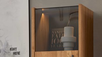 Elegante Lichtakzente für stilvolles Wohnen – die Streifenbeleuchtung für die Highboard-Vitrine aus der Interliving Wohnzimmer Serie 2027