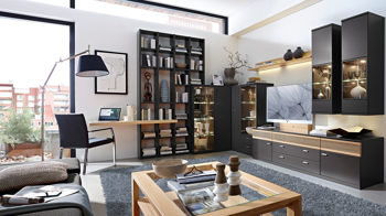 Funktionale Highlights sind der gedämpfte Frontenanschlag und der Softeinzug aller Schubladen, der ein angenehm leises Schließen ermöglicht. Gegen Mehrpreis erhalten Sie einige Wohnmöbel der Kombination mit energieeffizienter Beleuchtung. Durch den Typenplan mit einer großen Farb- und Typenauswahl können Sie das genaue Design der Wohnwand individuell an Ihren Geschmack anpassen. Auch weitere Artikel der Serie stehen Ihnen zur Verfügung - für ein rundum harmonisch eingerichtetes Wohnzimmer. Diese Elemente finden sie über die Produktnummer 483582-010.