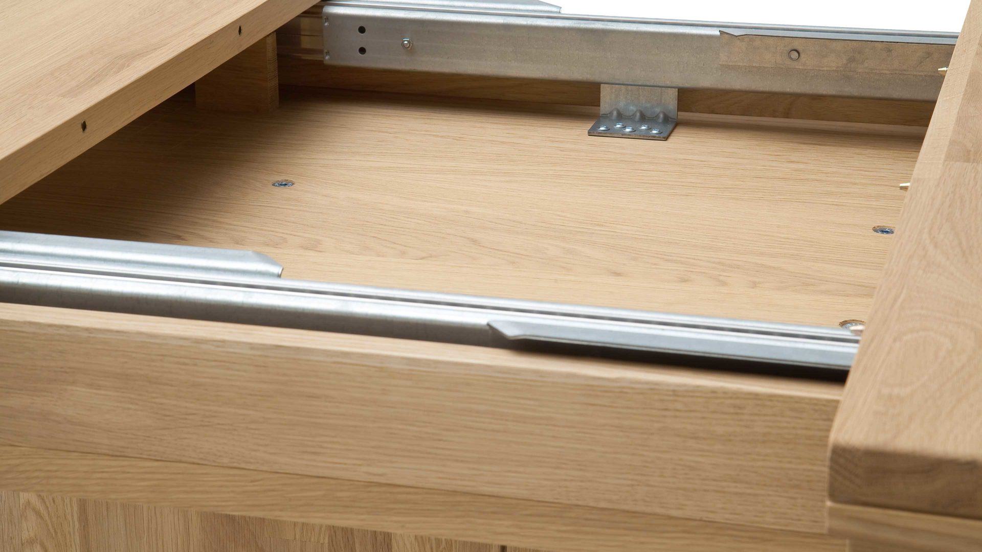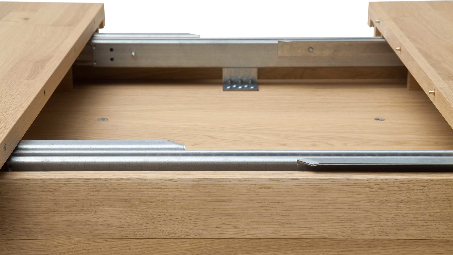 Auch funktional überzeugt der Holztisch auf ganzer Linie. Abgesehen von der Robustheit der erstklassigen Materialien bietet er Ihnen eine praktische Verlängerungsoption. Der Tisch ist mit einem Synchronauszug ausgestattet, sodass Sie ihn im Handumdrehen vergrößern können - etwa dann, wenn Sie Gäste zum Essen empfangen oder platzbeanspruchende Tätigkeiten auf ihm durchführen möchten.