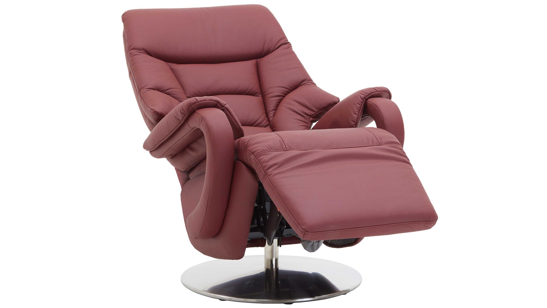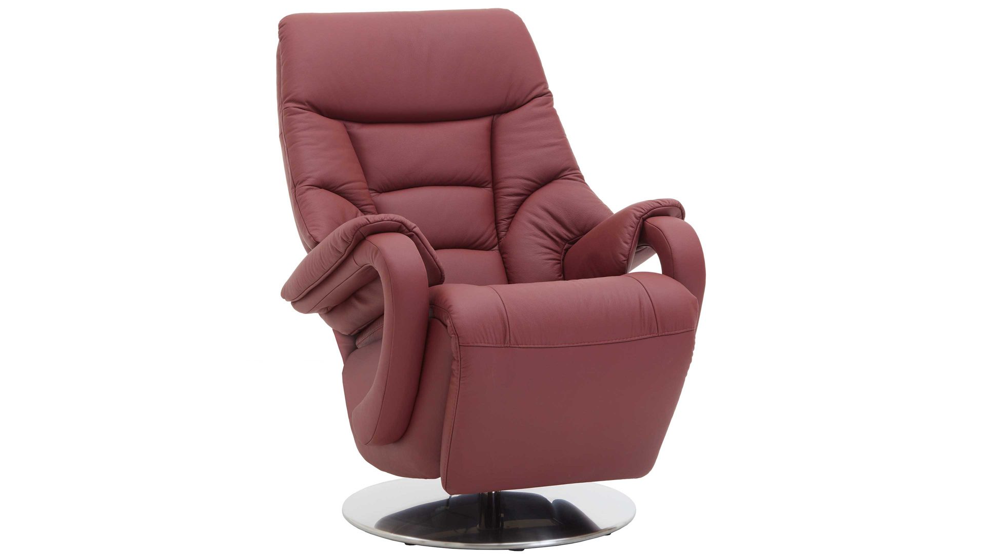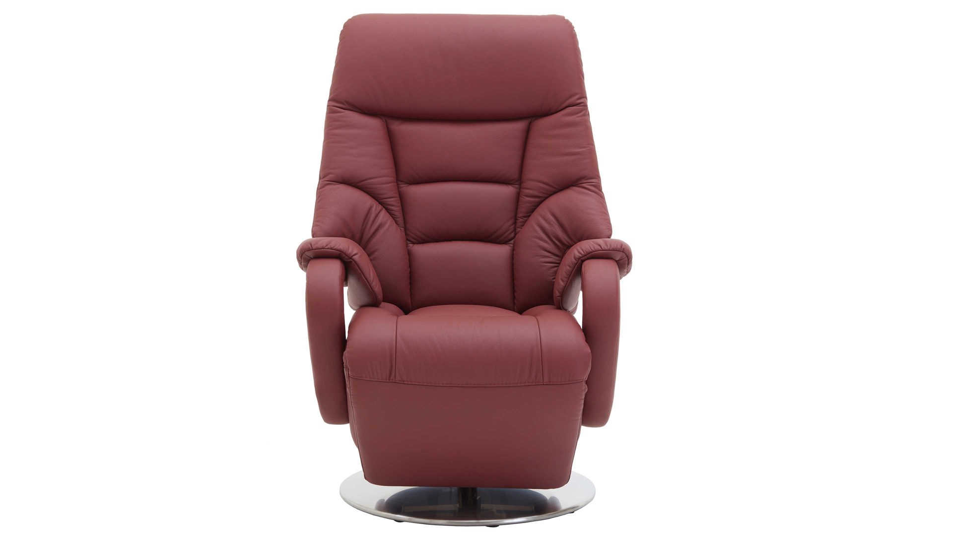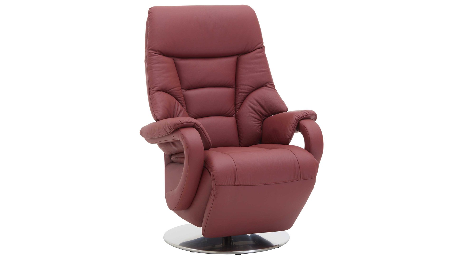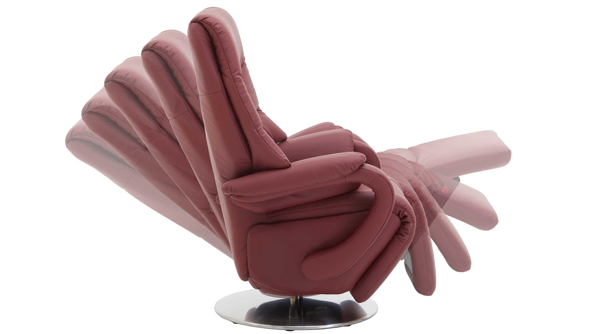 Dieser Relaxsessel kombiniert einen robusten glänzenden Edelstahl-Tellerfuß mit einem stilvollen merlotfarbenen Lederbezug. Durch die optimal ...