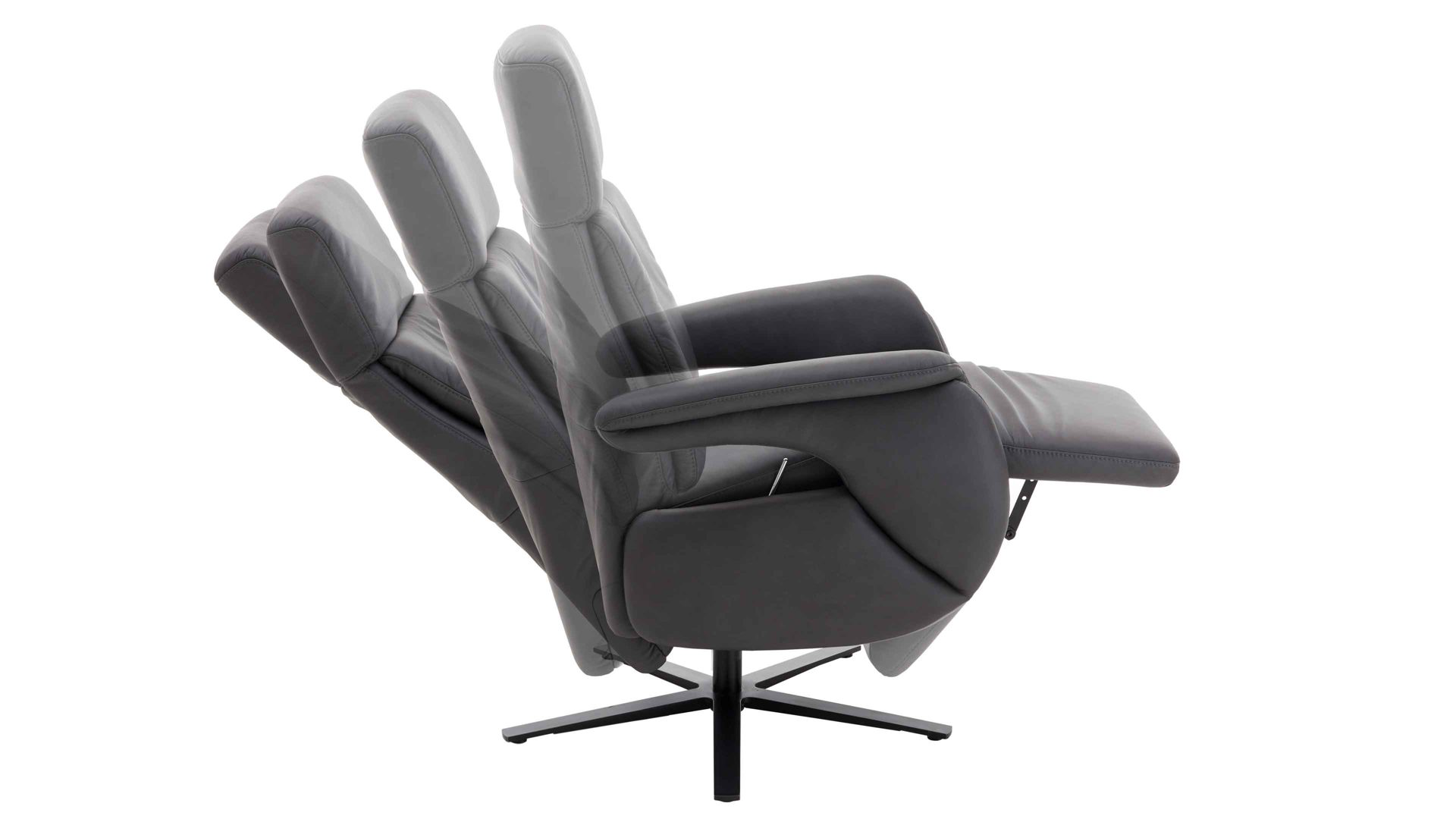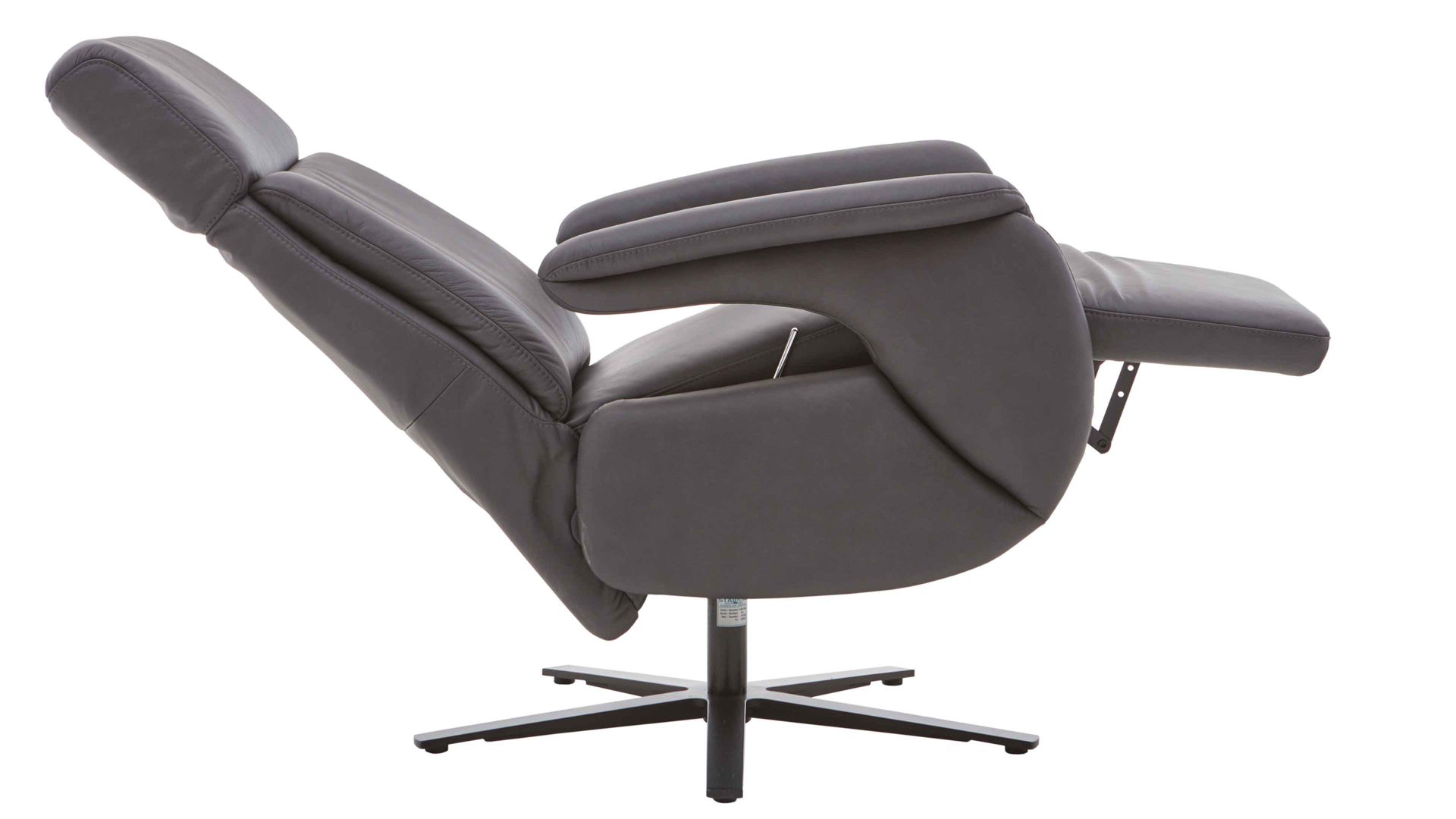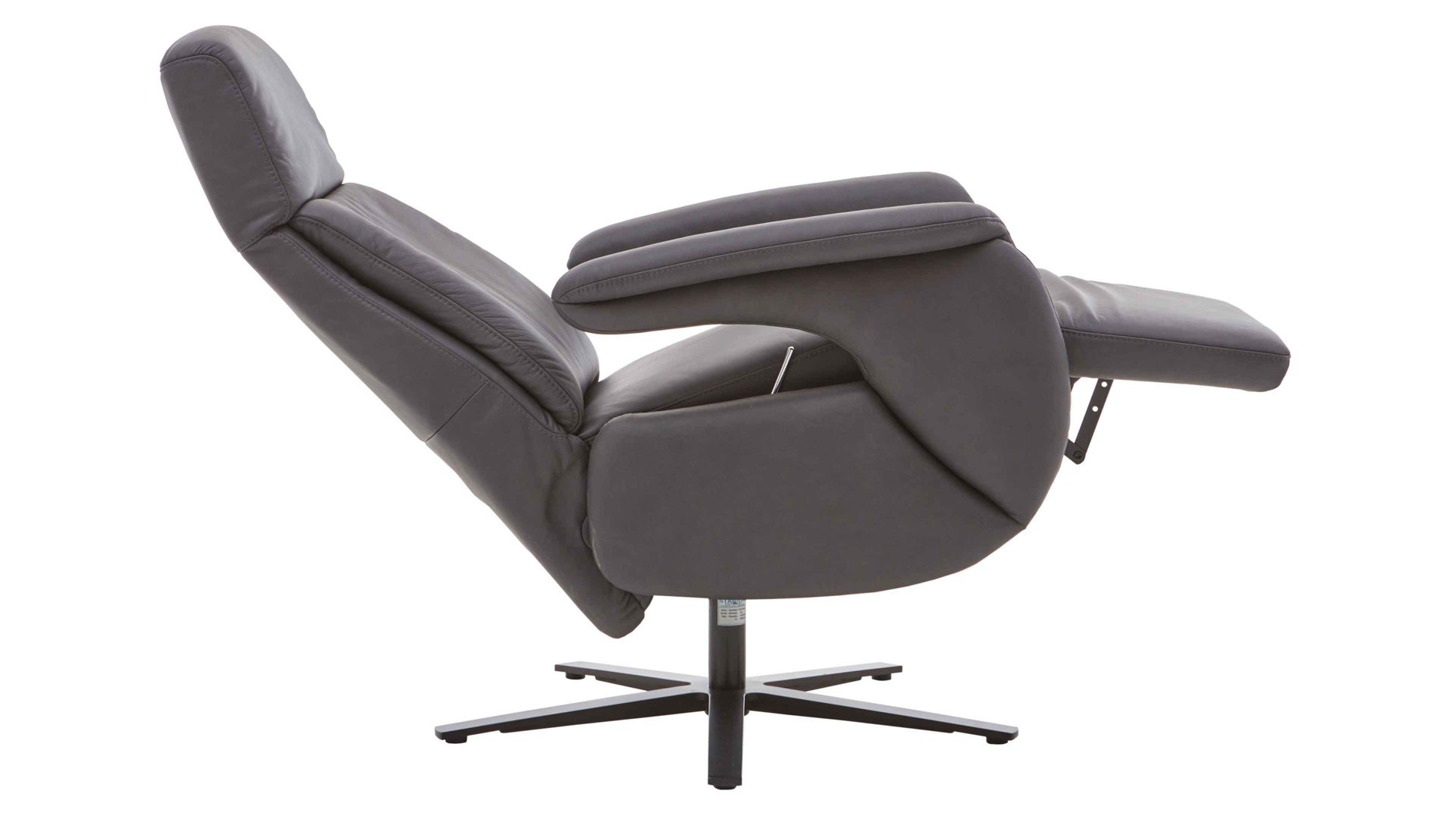 Der hochwertig verarbeitete Drehsessel aus dem Polsterprogramm Relaxa 6.0 Plus PSG XC bringt Komfort und modernes Flair in Ihr Wohnzimmer. Er kombiniert einen edlen anthrazitfarbenen LongLife-Lederbezug mit einem puristisch-mattschwarzen Metall-Sternfuß. Die Farben strahlen stilvolle Eleganz aus und harmonieren hervorragend miteinander. Darüber hinaus begeistert die hohe Qualität der Materialien: Das Leder ist enorm widerstandsfähig und langlebig und der robuste Metallfuß sorgt für die nötige Standfestigkeit und Stabilität des TV-Sessels.
