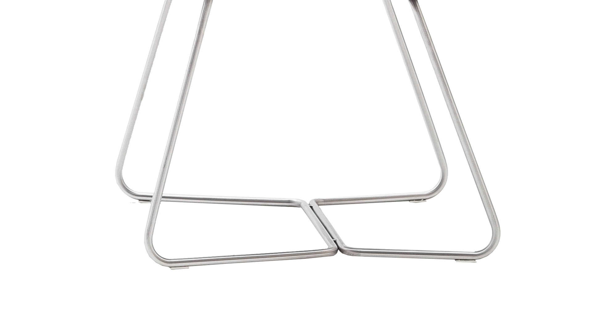 Der Polsterstuhl Hampton kommt in einem ausdrucksstarken Design: Sitz und Rückenlehne werden rundum von einem Stoffbezug in Chenille-Optik umhüllt. Der cappuccinofarbene Bezug trifft auf ein gebürstetes Edelstahl-Doppelkufengestell aus Rundrohr.
