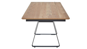 Dank mehrerer Individualisierungsmöglichkeiten können Sie den Esszimmertisch an Ihre Wünsche und Bedürfnisse anpassen. Zur Wahl stehen zwei stilvolle Gestellfarben und sieben unterschiedliche Plattenausführungen. Darüber hinaus ist der Tisch in vier verschiedenen Größen erhältlich. Optional lässt sich ein praktisches Frontauszugssystem mit Klappeinlage integrieren.