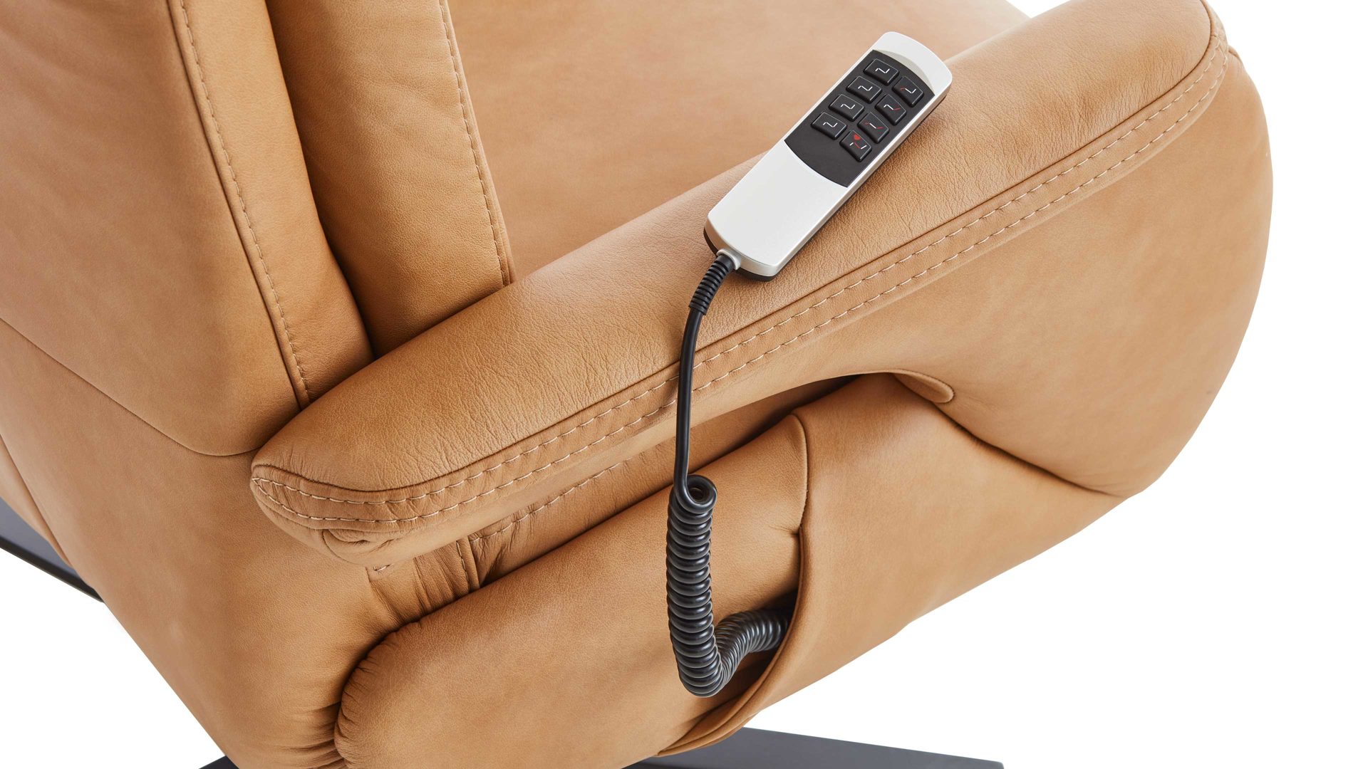 Die motorischen Sesselfunktionen sind ein Funktions-Mehrpreis für die Relaxsessel aus dem hochwertigen Polsterprogramm OrthoSedis 6.0. Über einen Handschalter lösen Sie die insgesamt drei Elektromotoren aus.