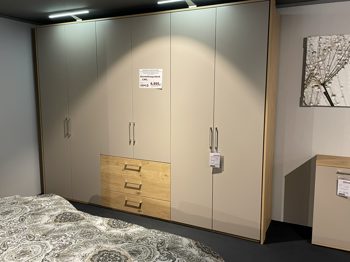 - Drehtürenschrank 6-trg., schlichte Türen, B300x H229,4 x T59,5 cm