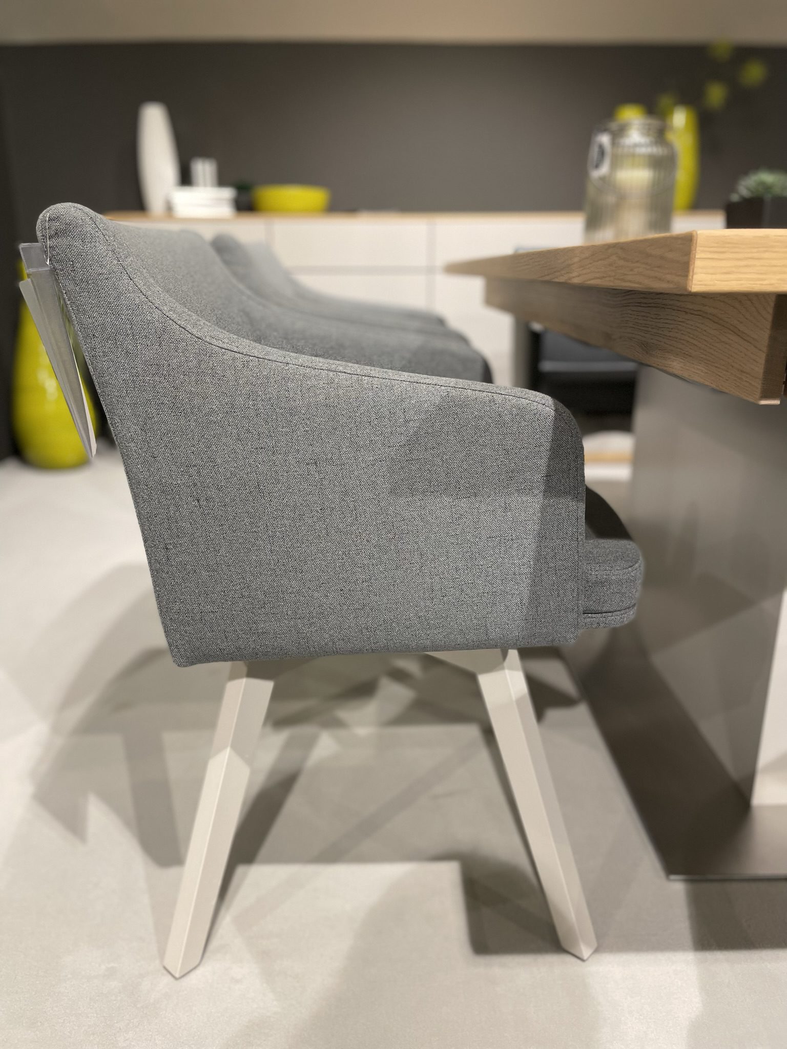 Stuhlgruppe VALEA   mit Vollpolsterrücken Massivholzgestell: Lack grau Bezug: Mellow umbra 7 Sitzhöhe: 49,5 cm Sitztiefe: 43,5 ...