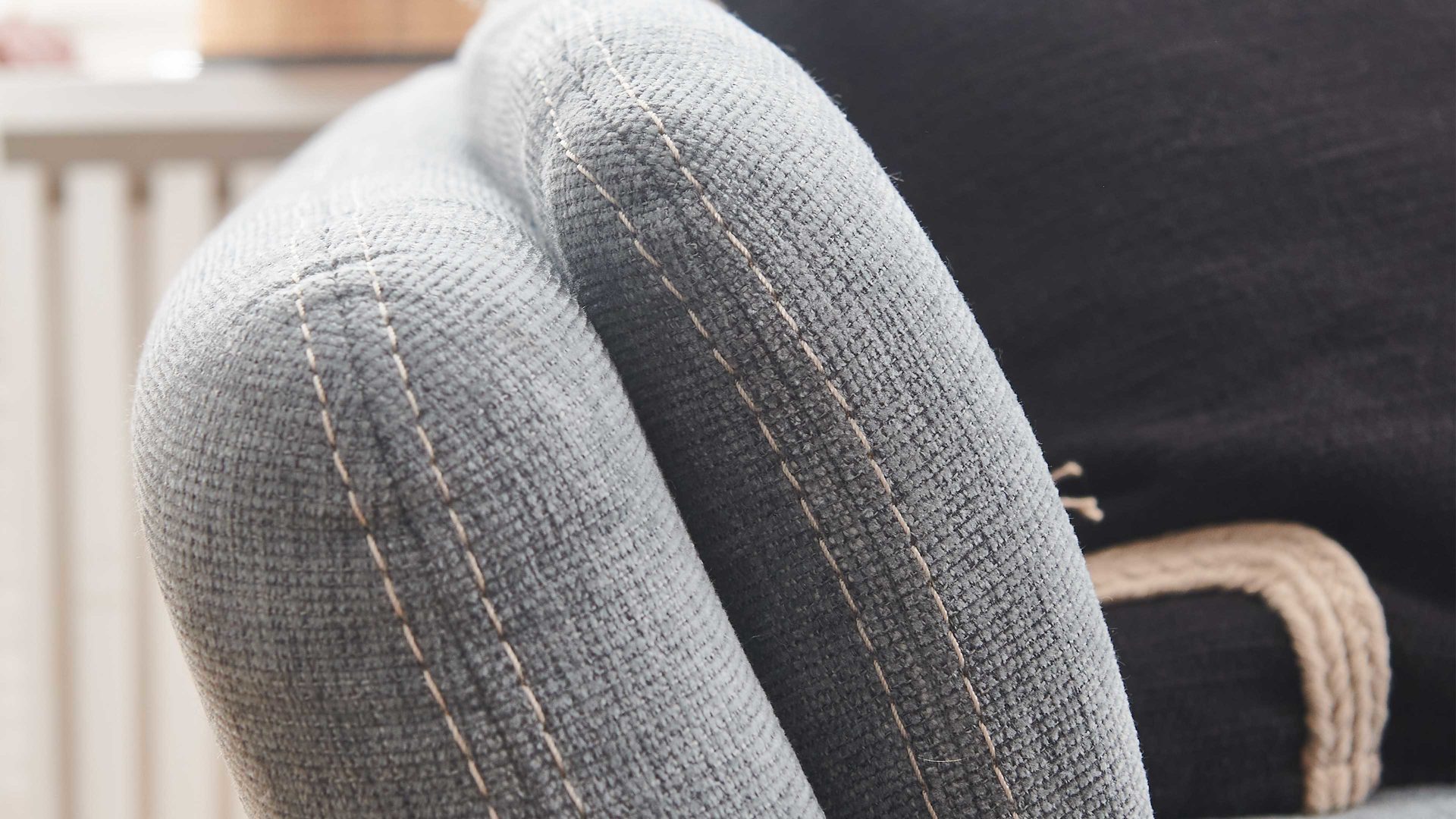 stahlfarbener Stoffbezug mit beiger Kontrast-Doppelsteppnaht