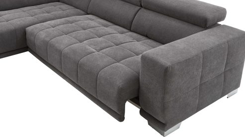 Ein besonderes Highlight der Serie ist die inklusive Kopfteilverstellung, die Ihnen zusätzlichen Komfort bietet. Sie haben außerdem die Möglichkeit, manuelle und motorische Funktionen hinzuzufügen, um die Sofaecke noch bequemer zu machen. Alternativ können Sie die Couch auch mit Holzfüßen erhalten.