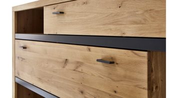 Doch das ist noch nicht alles: Die Schubkästen des TV-Unterteils überzeugen mit praktischer Unterflurführung, Selbsteinzug und Dämpfung. Hier finden DVDs, Fernbedienungen und andere Utensilien ihren Platz. Das Regal bietet mit einem Paneel und zwei Holzböden zusätzlichen Stauraum für Bücher oder kleine Accessoires.