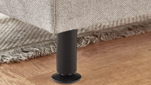 Stilvoll abgerundet wird die Eckgarnitur durch die puristisch mattschwarzen Metallfüße Z002-M01. Die Rückseiten sind serienmäßig im Originalstoff bezogen, was die Hochwertigkeit der Optik noch einmal verstärkt.
