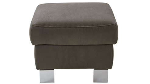 geprägter anthrazitfarbener Mikrofaserbezug mit beiger Kontrastnaht und chromfarbene Metallfüße
