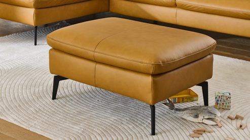 kurkumafarbenes Leder Vivre & schwarze Metallfüße W010-M01 - ca. 86 x 64 cm