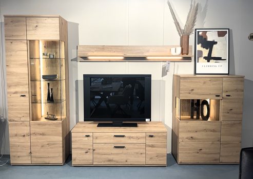 Lack crema und Eiche sand furniert – Stellmaß ca. 372 x 243 cm