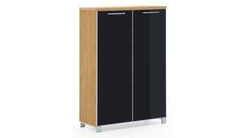 Eiche Bianco & anthrazitfarbenes Glas – eine Schublade, zwei Klappen